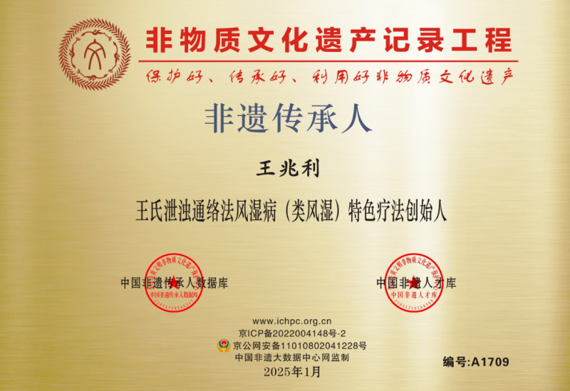 “王氏泄浊通络法风湿病(类风湿)”非遗疗法传承人