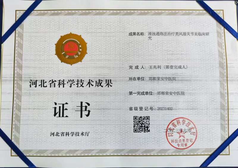 该疗法不仅被收入《中国医学创新发展》一书,还荣获了2008年度全国卫生科技新成果奖,其相关论文也在《河北中医》等权威期刊上发表,为中医风湿病的治疗提供了新的思路和方法。