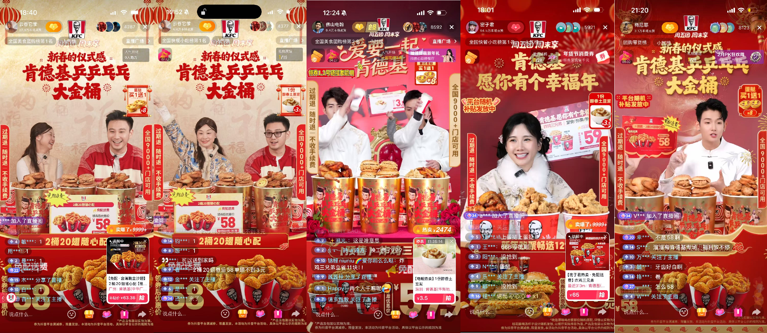 在“抖省省”平台,肯德基同样展现出对新兴媒体趋势的快速响应。作为平台首推的新场景,肯德基敏锐捕捉这一机会,第一时间展开合作,借助平台补贴首次实现各大区域线下门店的全员动员,全面铺设大金桶与“抖省省”的联合物料。通过直播间、朋友圈、门店、私域的多渠道联动,让高单价的新春大金桶在线下门店快速走量。最终,大金桶成为“抖省省”首个千万GMV级的超级爆品——为品牌在新渠道的探索跑通了一个可复制的范本。