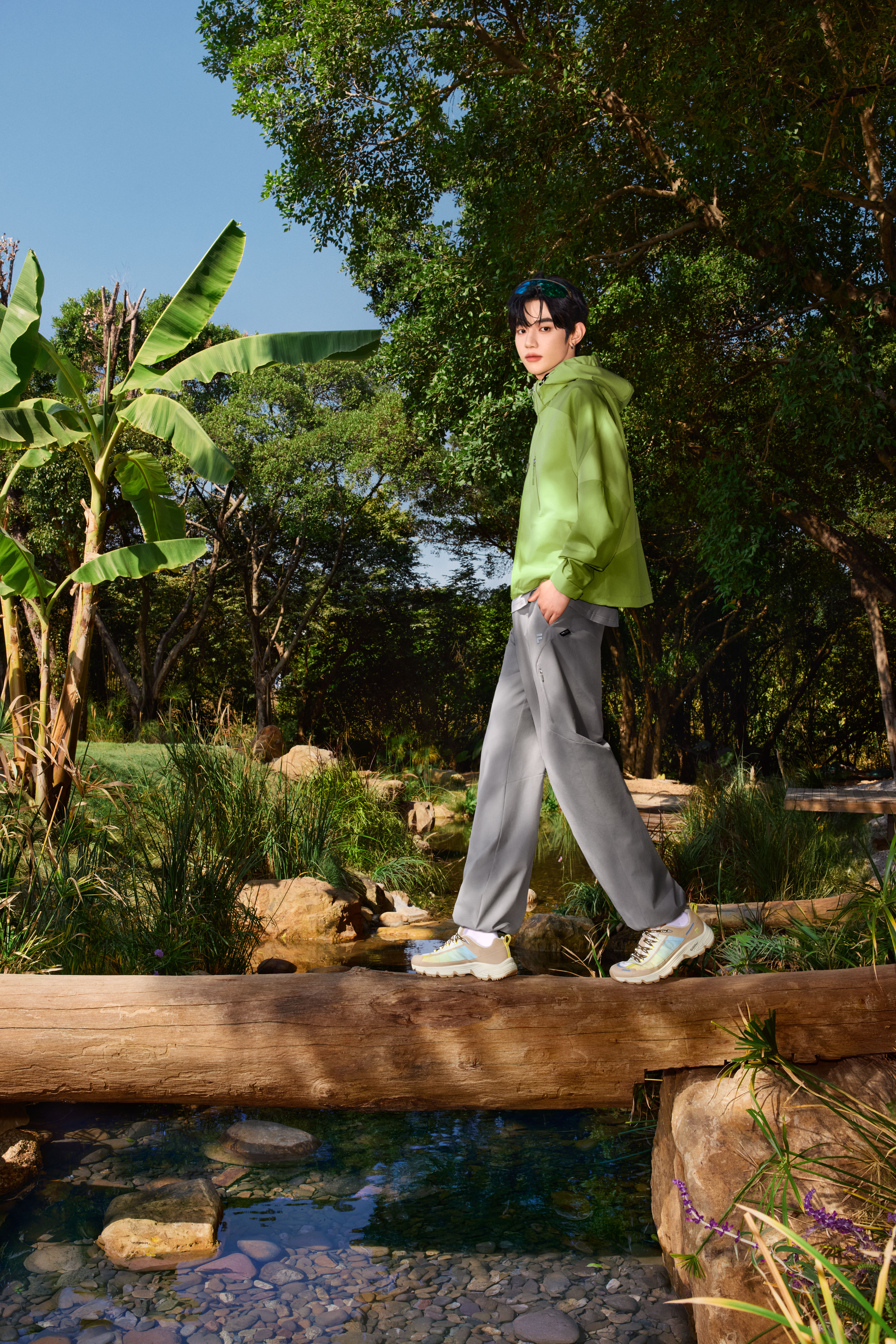 本季URBAN TECH系列打破传统机能风服饰的冷感基调,将春日花卉的视觉能量转化为穿搭语言,重磅推出五款专属花系配色。FILA FUSION潮流品牌大使章昊率先上身新机服「春芽绿」,将春日的生机与机能风的潮流感和谐奏鸣。
