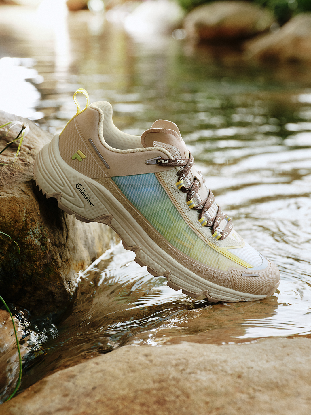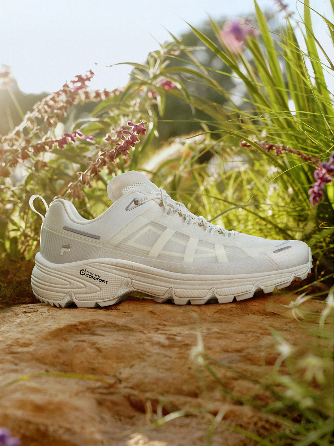 本季FILA FUSION同样以科莫湖畔的春日花色为灵感,为COMO湖系户外鞋带来了全新迭代。自从诞生以来,COMO系列一直承袭着意大利科莫湖的自然意境,将度假般的松弛感融入日常步伐,本季的COMO则在延续湖系户外精神的基础上,加入了清凉透气的MONO纱薄荷网布与升级版VIBRAM® MEGAGRIP湿地止滑大底等全新的功能科技,帮助在城市与自然边缘寻找内在平衡的消费者们慢下脚步,聆听自然的声音,找回内心的治愈与包容。