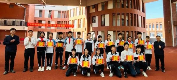 为了更好的激励同学踊跃参与运动,活动设立了特等奖、一二三等奖、优秀奖以及明星班级奖等不同维度的荣誉奖项。经过一个月的激烈角逐,共计181名同学、4个班级脱颖而出。11月17日,表彰大会顺利举行,获奖代表依次登上领奖台,校领导为其颁奖并合影留念。校领导也表示:“这次学校举办智慧体育挑战赛,在AI设备的加持下,学生运动兴趣大幅提升。活动不仅展现了天外学子的青春与力量,也借此为湾区全运喝彩助力。希望同学们未来能将体育运动融于日常生活,拥有强健体魄。”