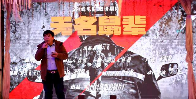 在热烈的掌声中,电影《无名鼠辈》的核心主创团队登台亮相。他们是影片的灵魂与基石——出品人、导演兼编剧刘云飞,联合出品人林盛,贵州民族电影制片厂厂长王东友、常务厂长闫博、副厂长王玉伦,执行导演张煜阳,动作导演李三毛,总制片人刘海,制片人谭亮,制片主任叶少龙,以及众多默默付出的幕后同仁。