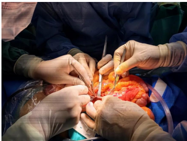 面对这一消化系统罕见的危急重症,我院结直肠肛门外科团队在汪建平教授、周宏锋教授、窦若虚教授的带领下,勇于攻坚,成功实施了一例腹腔镜下全结直肠切除+回肠储袋肛管吻合术(IPAA)+自体血管移植延长肠系膜上动静脉术,最终助患者转危为安,重获新生!